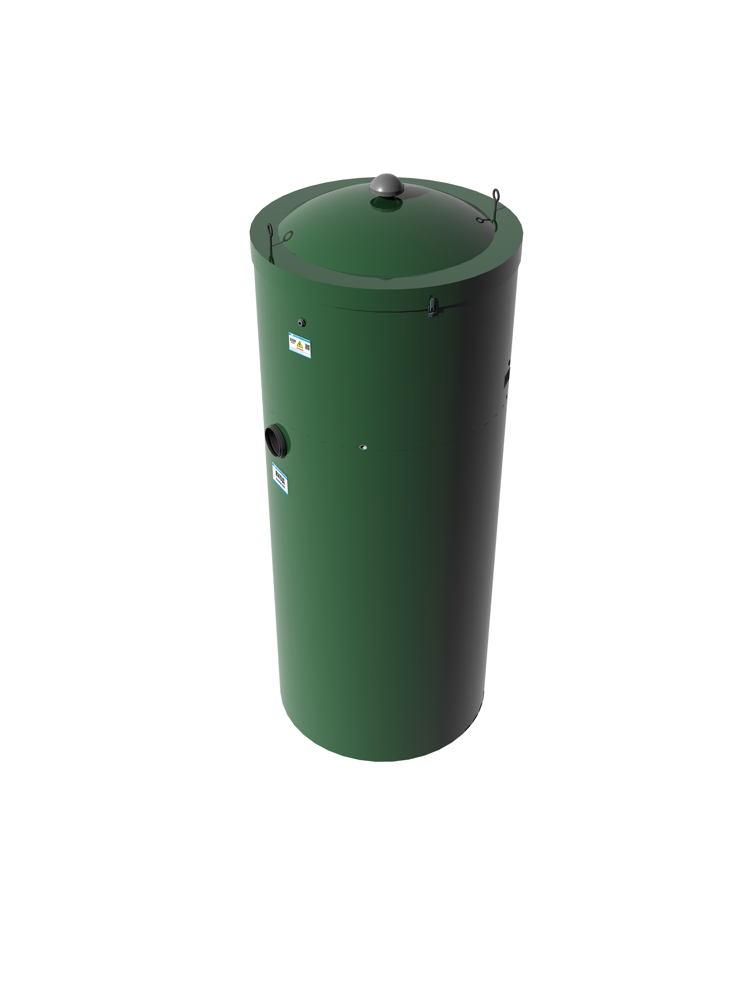 Цилиндрический корпус устанавливается в колодец из бетонных колец, диаметром 955 мм Очищенная вода удаляется в самотечном режиме. Такая модель станции может монтироваться в условиях повышенной нагрузки (под автомобильные стоянки или на проезжей части)