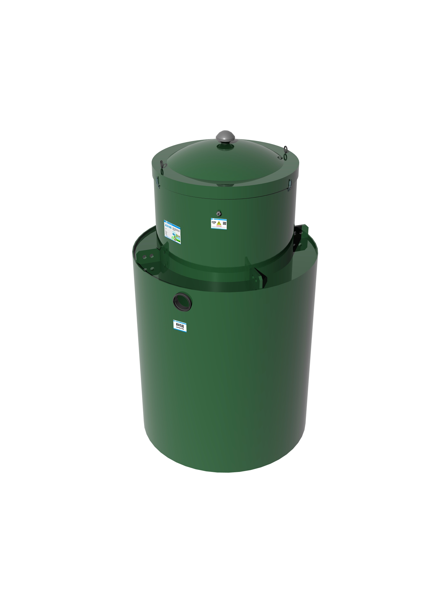 Цилиндрический корпус устанавливается в колодец из бетонных колец, диаметром 1500 мм Очищенная вода удаляется в самотечном режиме. Такая модель станции может монтироваться в условиях повышенной нагрузки (под автомобильные стоянки или на проезжей части)